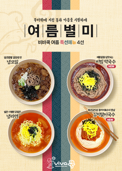 비바쿡 여름 특선메뉴4선 출시 페이지 정보 조회 938회 작성일 23-06-07 11:10 목록 본문 목록 이전글[신메뉴 출시] 어묵깡 시리즈 4종 23.06.21 다음글성황리에 제2회 메뉴시연회가 종료되었습니다. 23.05.23